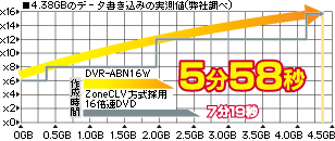 DVR-N16Wシリーズは、2層DVD+Rライト4倍速、1層DVD±Rライト16倍速の超高速DVDデュアルドライブ。2層DVD+Rは4倍速書き込み、DVD±Rは16倍速でDVD書き込み「5分台突入」の業界最速クラスです。