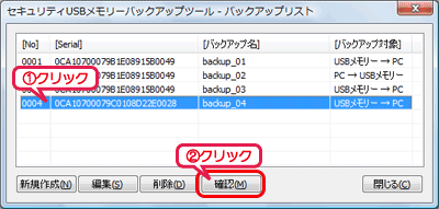 確認したいバックアップ情報を選択し、[確認]をクリックします。