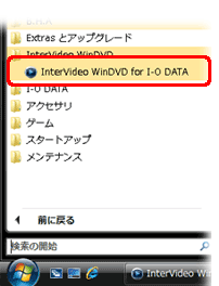 「WinDVD」を起動します。 [スタート]→[すべてのプログラム)]→[InterVideo WinDVD]→[InterVideo WinDVD for I-O DATA]の順にクリックします。