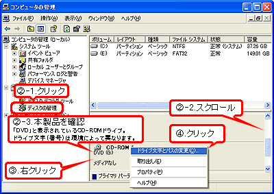 B本製品を右クリックして、[ドライブ文字とパスの変更]をクリックします。](images/faq/drivemoji2.gif) |