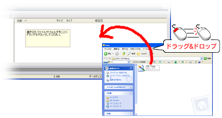 デスクトップ上やエクスプローラから直接、画面下段にデータをドラッグ&ドロップすることもできます。