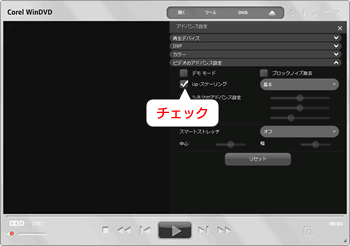 SD画質の映像をHD画質並の高画質で見たい場合は、以下の手順で設定してください。 この設定は、メディアをセットした後で行ってください。