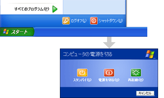 Windowsを終了し、パソコンの電源を切ります。 (画面例:Windows XP)