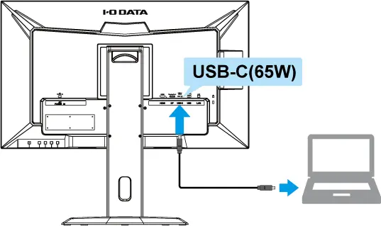 様々な機器を利用できるようにする準備 USB ハブ LAN本製品につないだ様々な機器を利用するため、背面の USB-C(65W)端子とパソコンの USB-C 端子を添付の USB ケーブルでつなぎます。 lightbulb参考ご注意機器を使用中に、本製品の USB-C(65W)端子とパソコンの間の USB ケーブルを抜かないでください。
