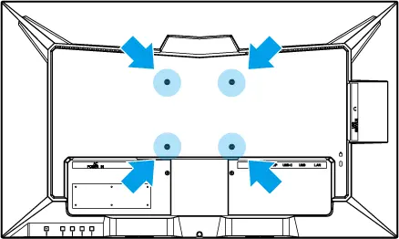 ※ VESA 取付の際は、液晶パネル(表示面)が破損しないように注意しながら液晶パネルを下にし、個装箱や柔らかい布の上に置いて作業してください。