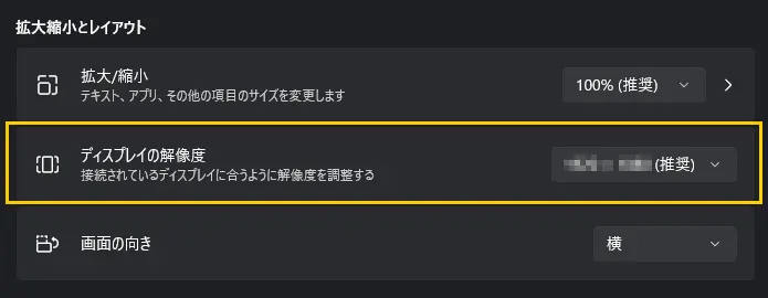 lightbulb参考Windows 10 で画面に解像度の設定がない場合[ディスプレイの詳細設定]をクリックし、その先で解像度を設定した後、[適用]をクリックします。