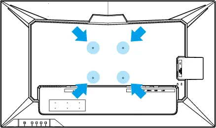 ※ VESA 取付の際は、液晶パネル(表示面)が破損しないように注意しながら液晶パネルを下にし、個装箱や柔らかい布の上に置いて作業してください。