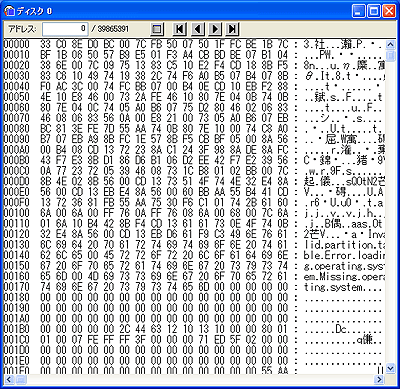 確認したいディスクを右クリックして、[セクタ内容のダンプ]をクリックします。