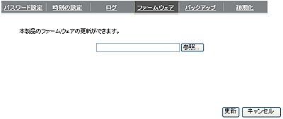 [システム設定]→[ファームウェア]→[参照]ボタンの順にクリックして、1.で解凍したファームウェアファイルの場所を指定します。