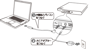 本製品をバスパワーでノートパソコンに接続する場合、ノートパソコンはAC電源に接続してください。