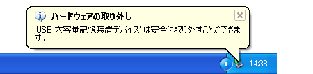 「取り外しができない」とメッセージが表示された場合は・・・ 使用しているソフトウェアをすべて終了してから、本手順をおこなってください。 (それでも同じメッセージが表示された場合、パソコンの電源を切ってから本製品をパソコンから取り外してください。)