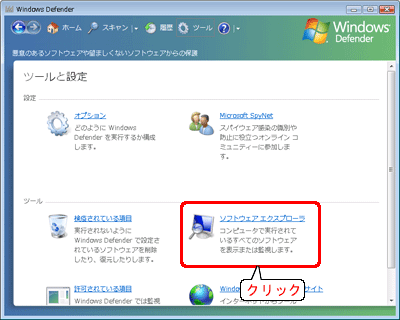 [ソフトウェアエクスプローラ]をクリックします。