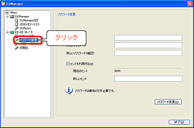 パスワードおよびヒントを変更することができます。 パスワードおよびヒントを変更しても、ED-S2シリーズ内のデータは消えません。