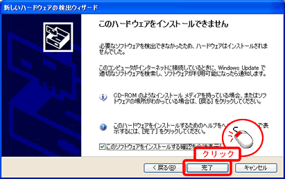 表示された画面の[キャンセル]ボタンをクリックして閉じてから、本製品を取り外します。 この後、本製品を取り付ける前に、インストールしてください。(インストール方法については、 【インストールする】 をご覧ください。)