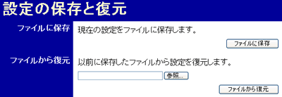 [ファイルに保存]ボタンにより保存したファイルから設定を復元します。復元するファイルを選択した後、[ファイルから復元]ボタンをクリックしてください。