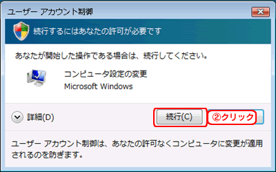 以下の画面が表示されますので、[続行]をクリックします。