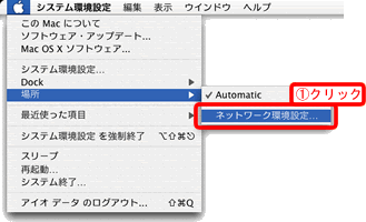 [場所]→[ネットワーク環境設定]をクリックします。