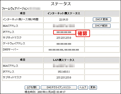 [インターネット側ステータス]の内容がプロバイダーからの資料と一致している場合 |