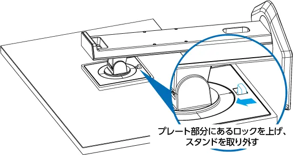 ※ VESA 取付の際は、液晶パネル(表示面)が破損しないように注意しながら液晶パネルを下にし、個装箱や柔らかい布の上に置いて作業してください。
