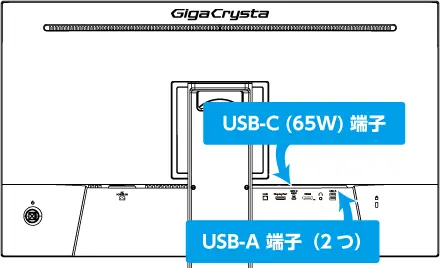 給電可能な USB 端子搭載本製品には給電可能な USB 端子を搭載しています。スマートフォンの充電などに活用できます。端子給電仕様USB-C(65W)端子5V/3A, 9V/3A, 15V/3A, 20V/3.25AUSB-A 端子5V/0.9A(各ポート)