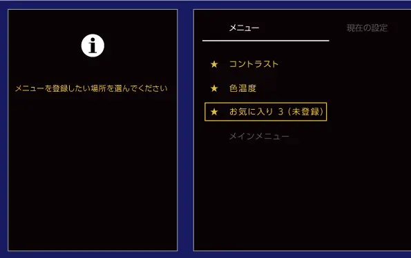 ⇒ 選んだ項目がお気に入りとして登録されます。lightbulb参考すでに登録済みの枠にも上書き登録できますお好みの項目に差し替えてお使いください。