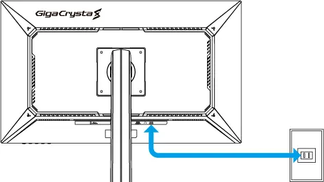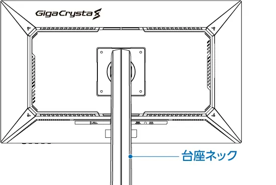 画面割れを防ぐために台座ネックを持ち、本製品を机の上などに設置してください。電源コンセントとつなぐ
