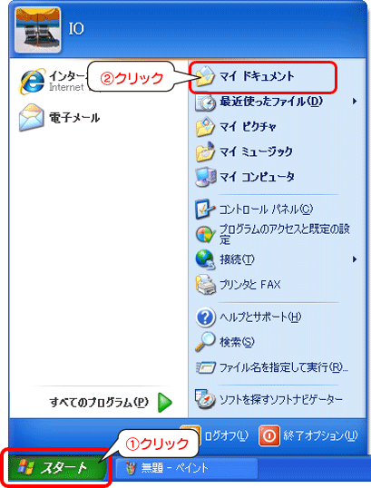 スタート→マイ ドキュメントの順にクリックし、開きます。