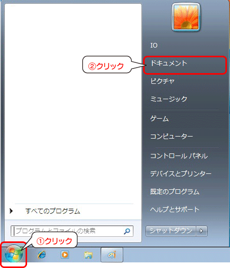 [スタート]→[ドキュメント]の順にクリックし、開きます。