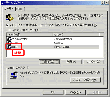 [このコンピュータを使うには、ユーザー名とパスワードを入力する必要があります]がチェックされていることを確認後、[追加]ボタンをクリックします。 | | |