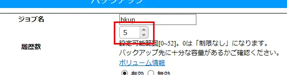 例えば、「10」に設定した場合、11 回目のバックアップ時に 1 回目の履歴は消去されます。