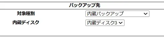 - 「バックアップ先」の「対象種別」で[内蔵バックアップ]を選ぶ
