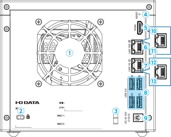 ※ 最大 10Gbps(理論値)で通信するには、ネットワークが 10GbE に対応している必要があります。LAN ケーブルについて、55m まではカテゴリー 6 で対応可能です。