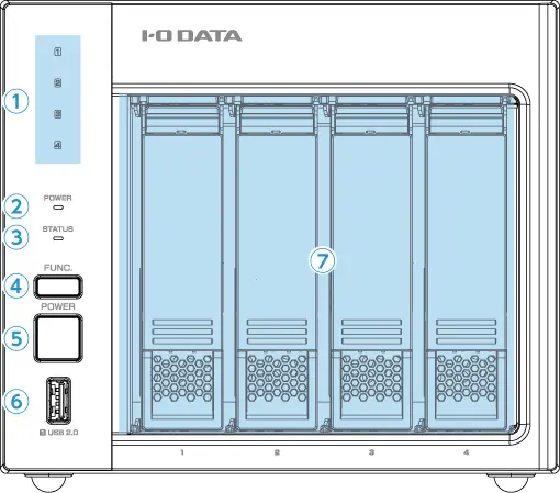 - RAIDeX(拡張ボリューム)使用時 / RAID のデグレード時には赤点灯しません。ディスク故障したディスクのランプだけが赤点滅します。