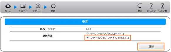 - [ファームウェアファイルを指定する]を選ぶ