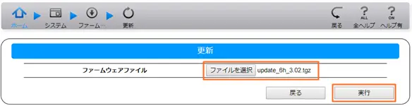[システム]→[ファームウェア]→[更新]をクリックする