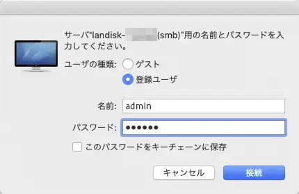 ※ Finder だけでアクセスする方法については、macOS 標準方法でアクセスするをご覧ください。