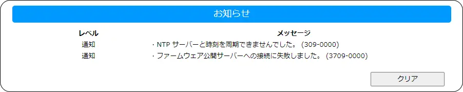 レベルが「エラー」のお知らせを消去します。