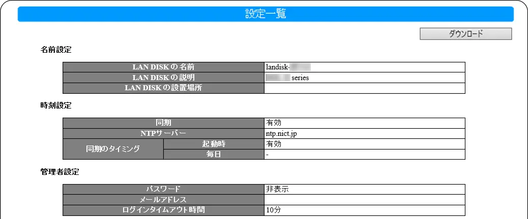 設定一覧 本製品の設定を一覧表示します。Web ブラウザーのプリント機能などを利用するなどして一括で情報を出力することができます。lightbulb参考設定一覧のダウンロード[ダウンロード]をクリックすると、設定一覧をダウンロードできます。