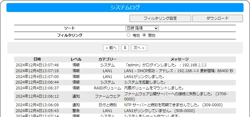システムログ