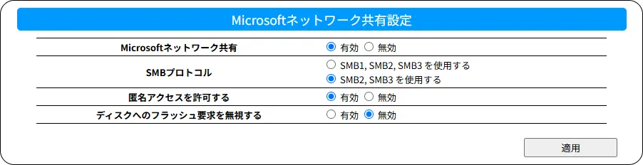 Microsoft ネットワーク共有設定