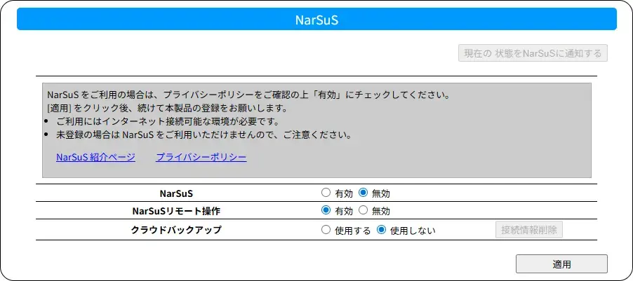 ※ NarSuS クラウドバックアップについては、詳しくは NarSuS クラウドバックアップ マニュアルをご覧ください。