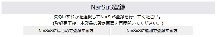 NarSuS の登録状況に応じてどちらかのボタンをクリックして、本製品を NarSuS に登録してください。