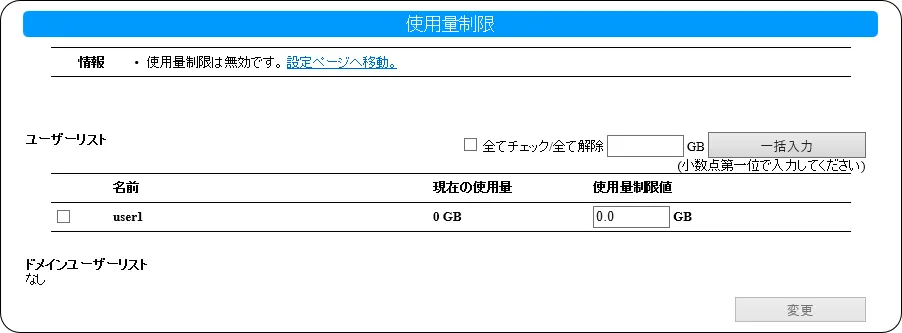 ※ 使用量制限値に [0] を設定した場合、使用量制限が無制限設定になります。