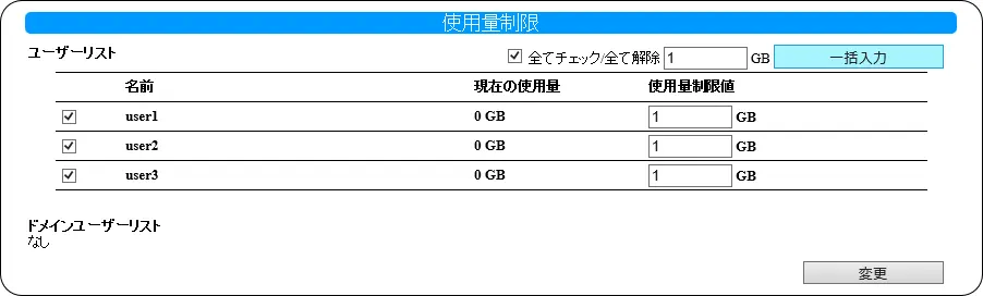 各ユーザー・グループの使用量制限を設定する