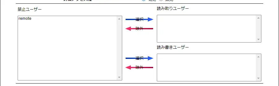 ⇒ 選んだユーザーが「読み書きユーザー」に移動します。