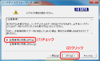 以上で『I-O DATA ハードディスクフォーマッタ』による本製品のフォーマットは終了しました。 |