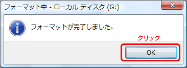 環境によってはクイックフォーマットできません。[OK]ボタンをクリックし、通常フォーマットをおこなってください。 |
