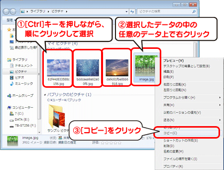 [スタート]→[ピクチャ]の順にクリックし、開きます。