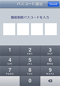 - 任意の機能制限用パスコードを入力します。