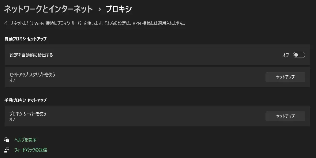 プロキシサーバーの設定プロキシサーバー(Basic 認証のみ対応)を利用する際のユーザー名、パスワードを設定します。(利用するプロキシサーバーの設定については、Windows 側で設定します。) ユーザープロキシサーバーのユーザー名を入力します。パスワードプロキシサーバーのパスワードを入力します。lightbulb参考プロキシサーバーの設定方法Windows の設定から設定します。スタートメニューから[設定]を開く[ネットワークとインターネット]→[プロキシ]をクリックするプロキシサーバーについて設定する